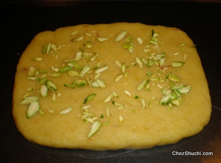Barfi after spreading on the the tray